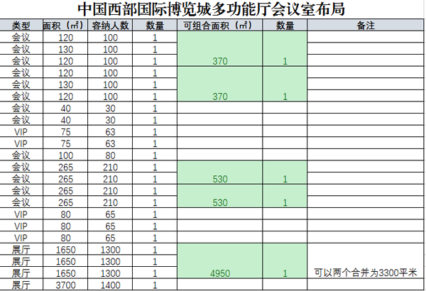 中国西部国际博览城(西博城)会议中心位于西博城9号多功能厅,展厅总面积为1.6万平米,有固定会议室18个,多种可变空间方案,满足不同的会议需求。会议中心采用可拆卸式的移动隔断,根据会议需求将会场分割成几个独立的会议空间。