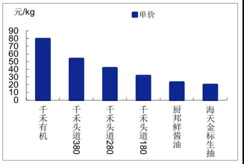 通过不同品牌产品单价的UI比可以发现,千禾高端产品的单价较其他知名品牌的畅销产品可高出 1-2倍,溢价极为可观。