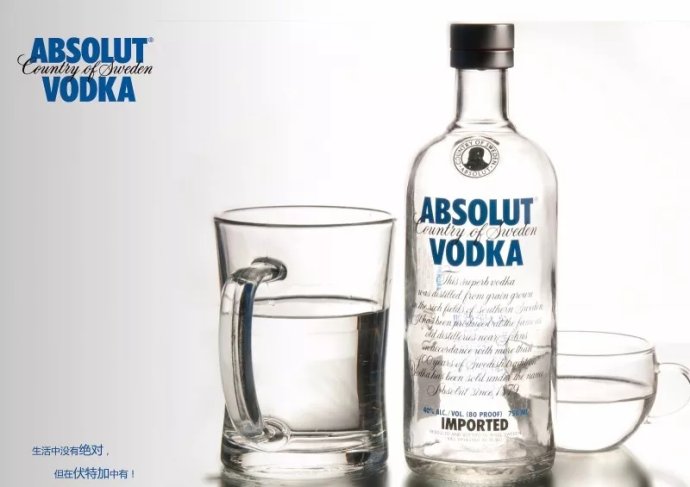 绝对伏特加是采用连续蒸馏法酿制而成,其品牌理念是纯净、简单、完美。