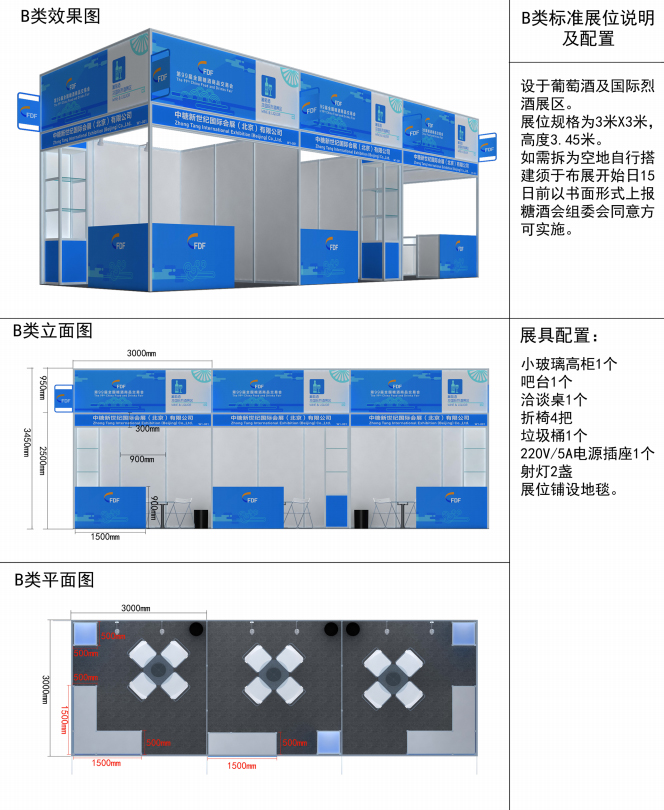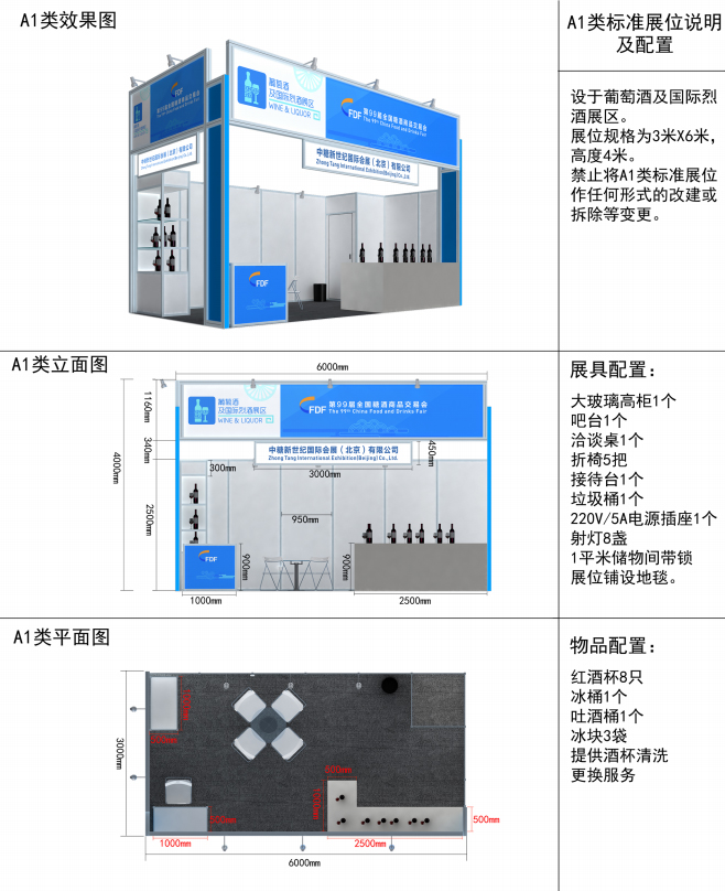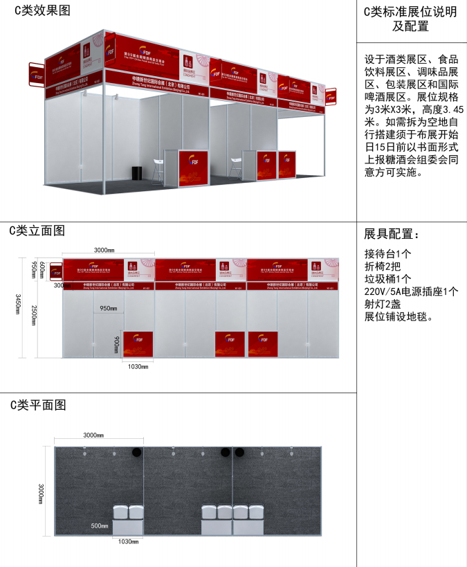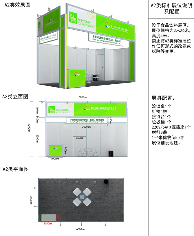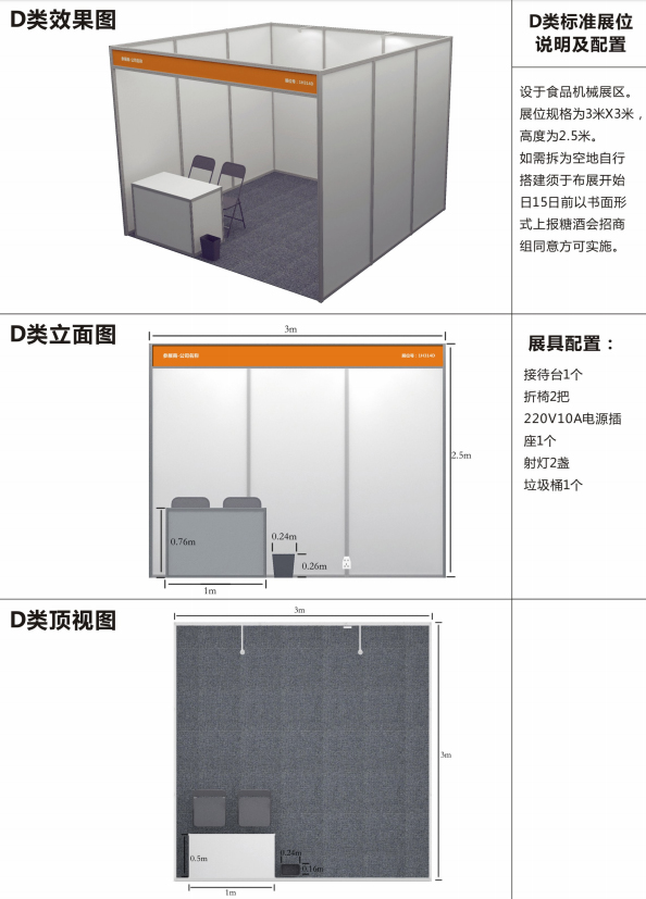 2. 标准展位:分为 A1、A2、B、C、D 五类,如下: